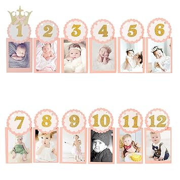 12pcs Lot Gold Pink Diy Photo Frame 1 12 Months Number Banners