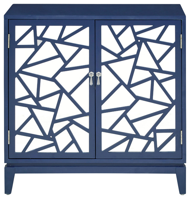 Mosiac Mirrored 2 Door Accent Chest Vivid Blue Contemporary