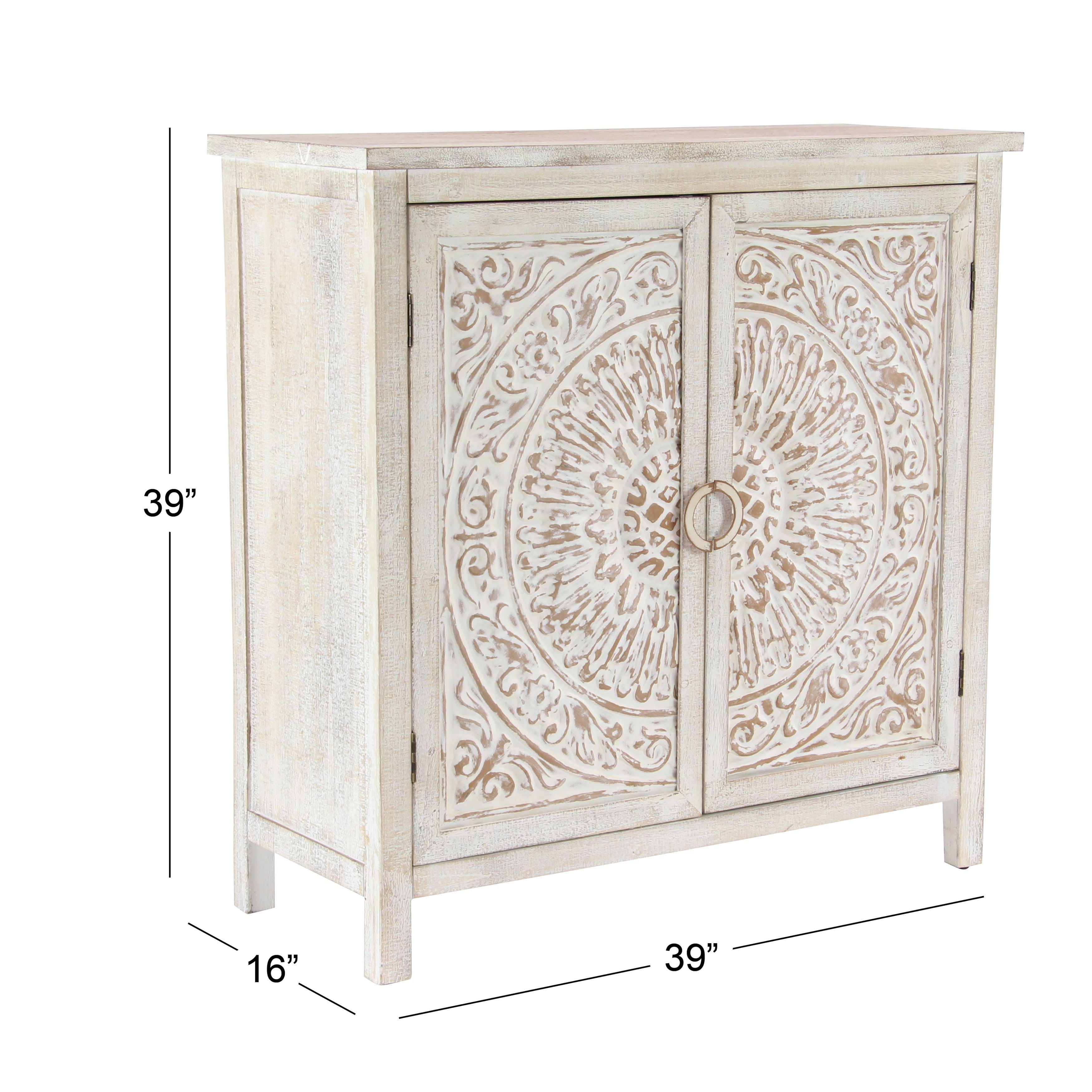 Decmode Traditional Carved Design 2 Door Wooden Cabinet White Walmart Com Walmart Com