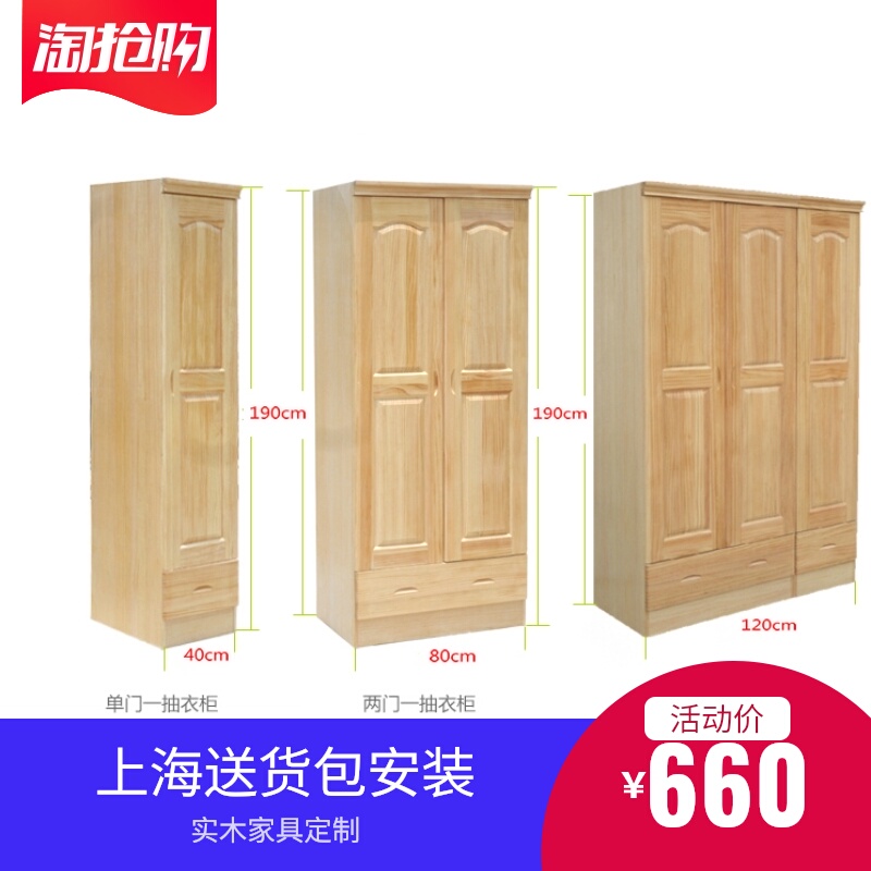 Wood Single Door Small Wardrobe Solid Wood Pine Cabinet 2 Door Cabinet Two Wardrobe Smaller Wardrobe Three Door Wardrobe Pastoral
