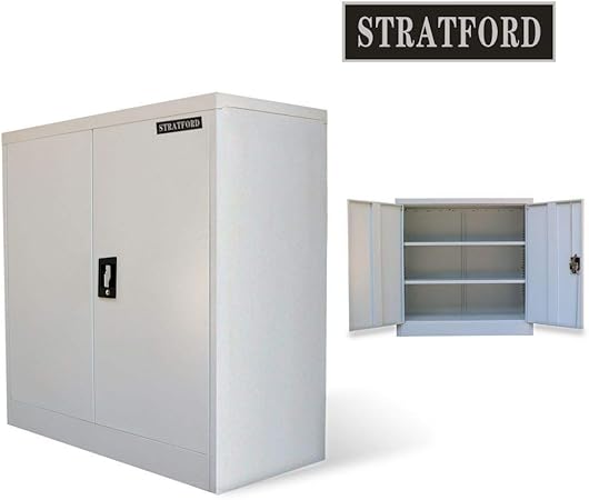 Stratford Metal Cabinet 2 Door Cupboard 3 Shelves 90cm Tall