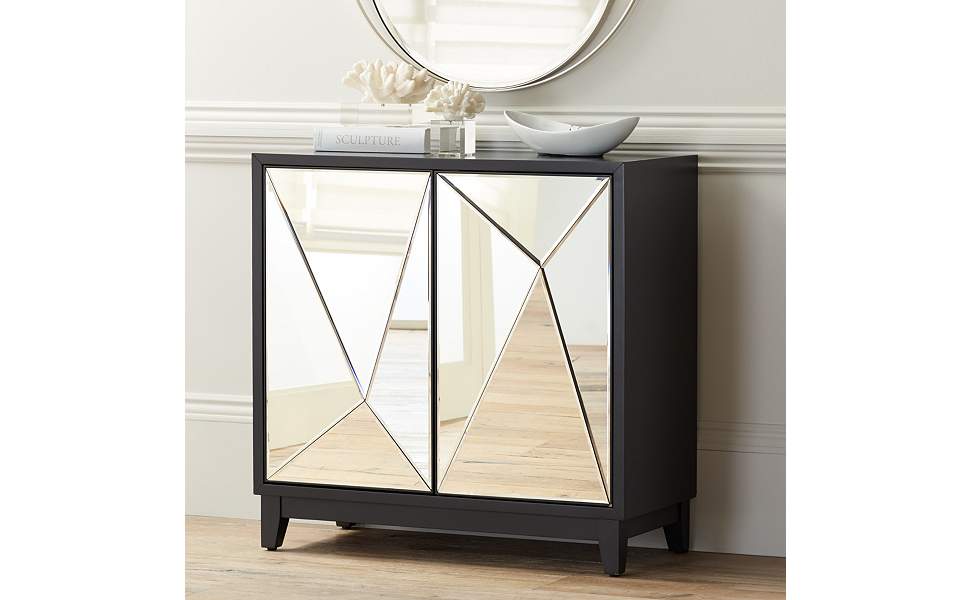 Console Storage Cabinet Accent Mirrored Glass 2 Door Chest Mirror