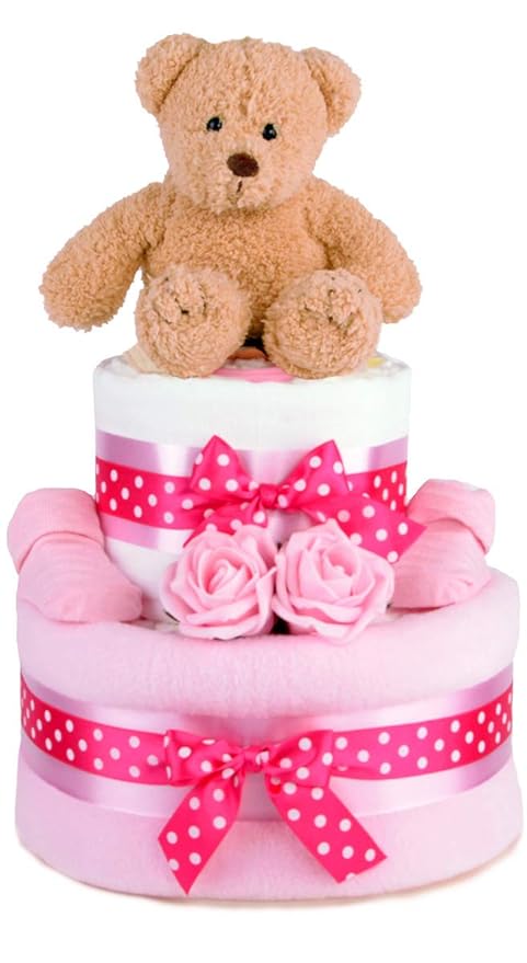 Baby Cakes 2 Tier Diaper Cake Girl Gift Baskets Plus