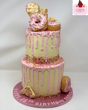 Two Tier Drip Cake With Donuts Cakestoolicious