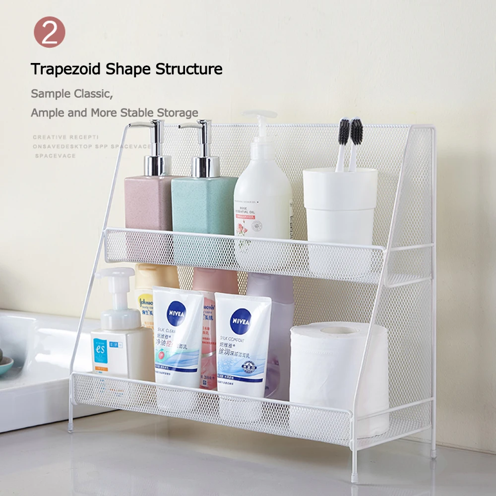 2 Tier Basket Storage Rack Metal Mesh Bathroom Organizer Shelf For