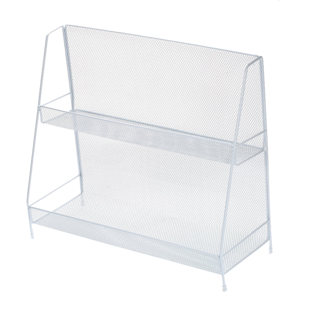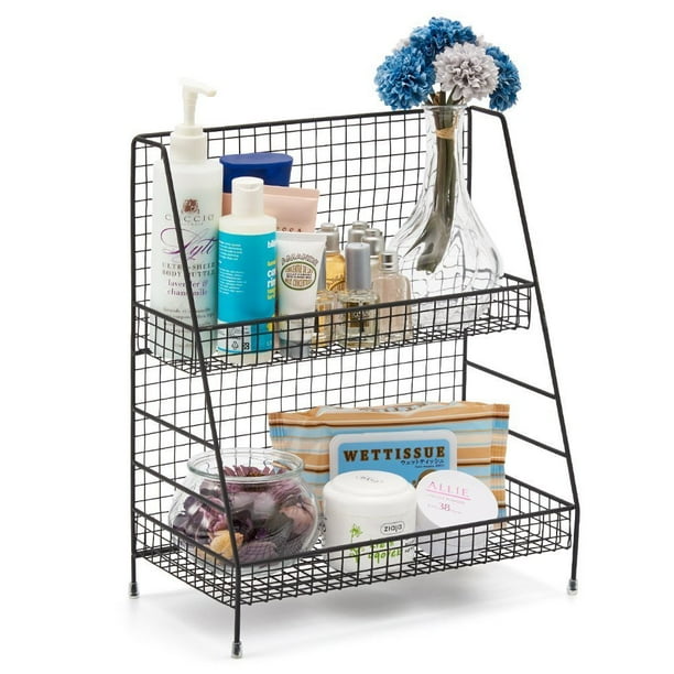 2 Tier Basket Storage Rack Metal Mesh Bathroom Organizer Holder