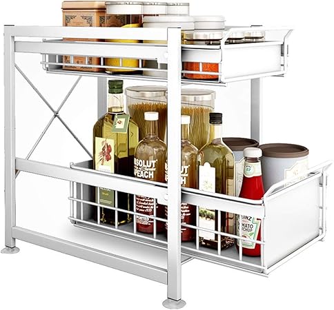 Gfftyx Kitchen Under Sink Organizer 2 Tier Drawer Basket Storage