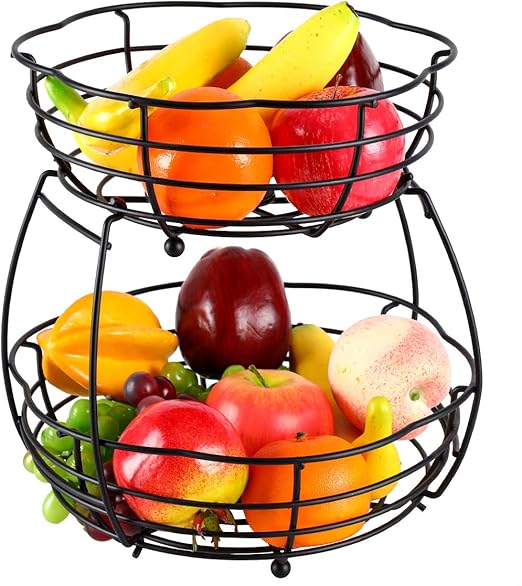 Izlif Fruit Baskets 2 Tier Metal Bread Basket Storage Display