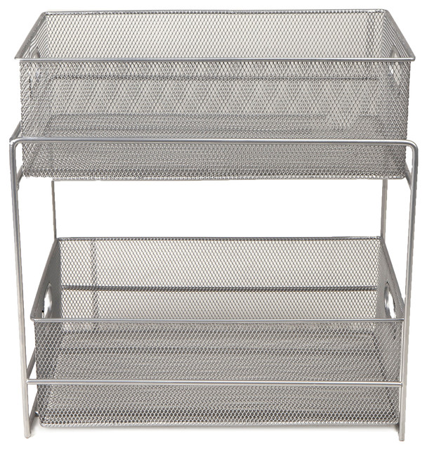 2 Tier Metal Mesh Storage Baskets Organizer Silver Transitional