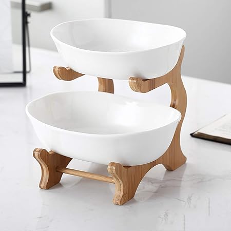 Amazon Com Myhzh 2 Tiers Fruit Basket Bamboo Stand Holder Ceramic