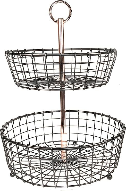 Amazon Com 2 Tier Tabletop Basket With Copper Plated Handle For