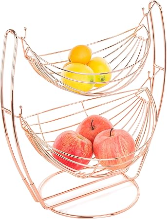 Mygift Rose Gold Tone Metal 2 Tier Hammock Style Fruits Produce