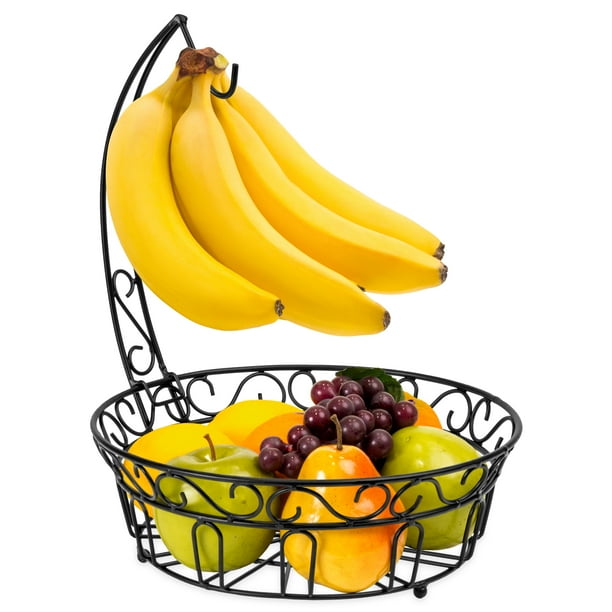 Basicwise Wire Metal Fruit Basket Holder With Banana Hanger