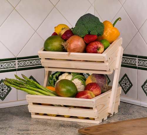 Two Tier Wodden Countertop Produce Fruits Stand Basket Diy Kit