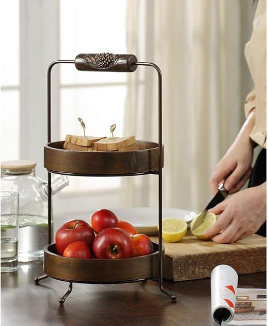Amazon Com Xyzx Fruit Basket Nordic Style 2 Tier Bowl Wooden
