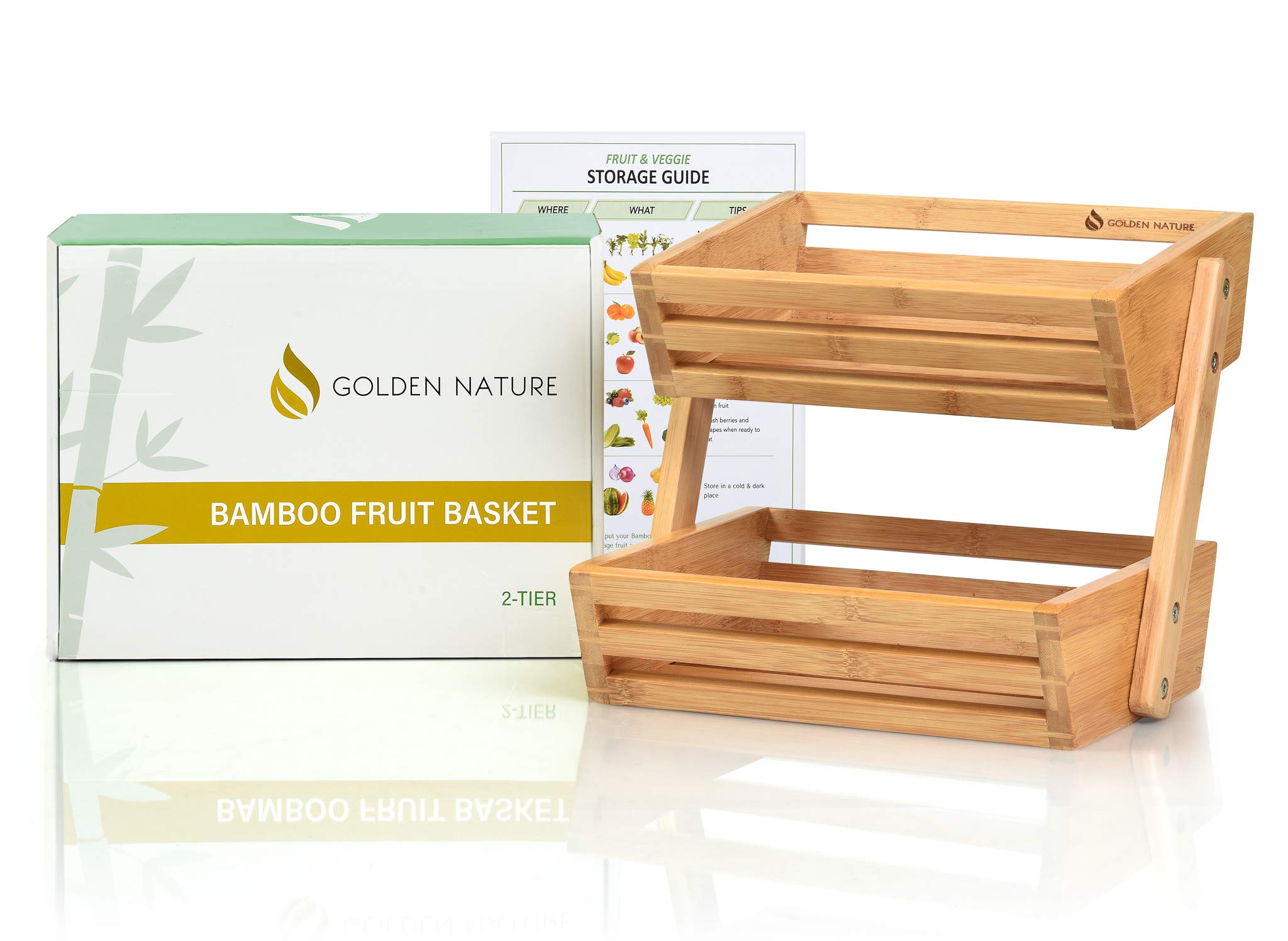 Golden Nature 2 Tier Bamboo Fruit Basket Fruit Stand For Kitchen