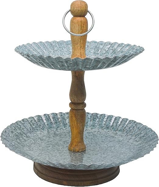 Amazon Com Deconoor 2 Tier Galvanized Wood Cake Stand Server