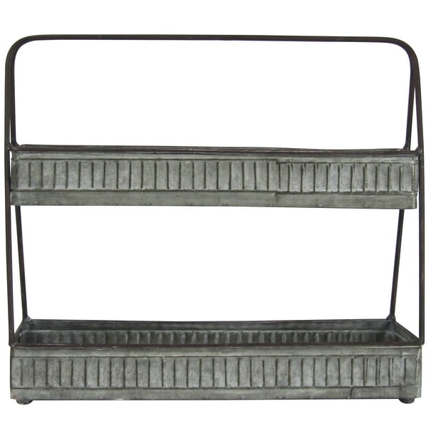 2 Tier Tray Galvanized Metal Farmhouse Style Walmart Com