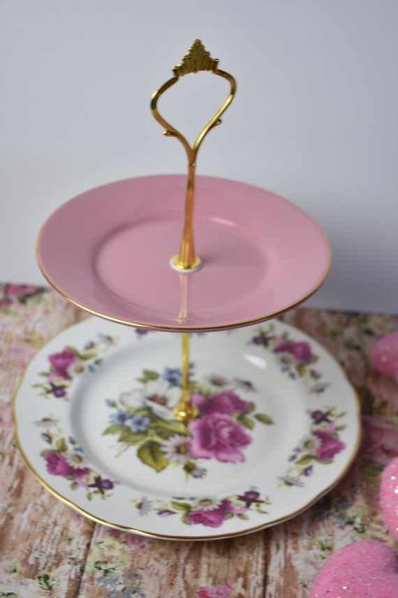 Pink Cake Stand Server 2 Tiered Server Pastry Stand Cupcake Etsy