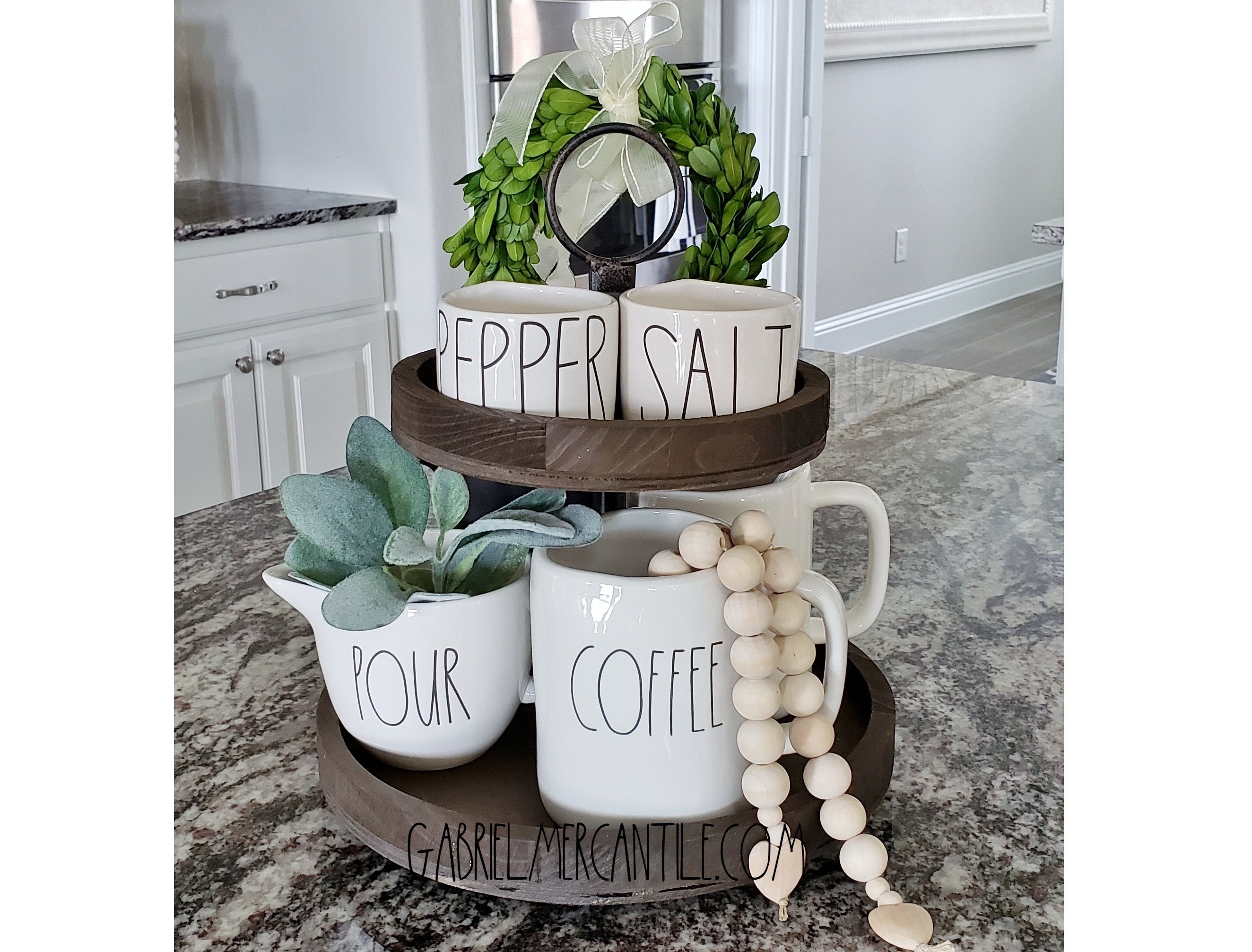 Circular 2 Tiered Tray Stand Farmhouse Serving Trays By