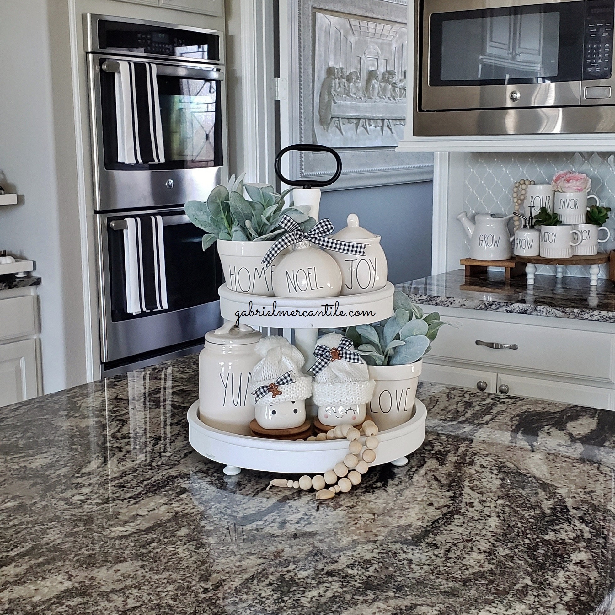 Farmhouse Revolving 2 Tier Stand Tiered Tray Decor Tiered Tray