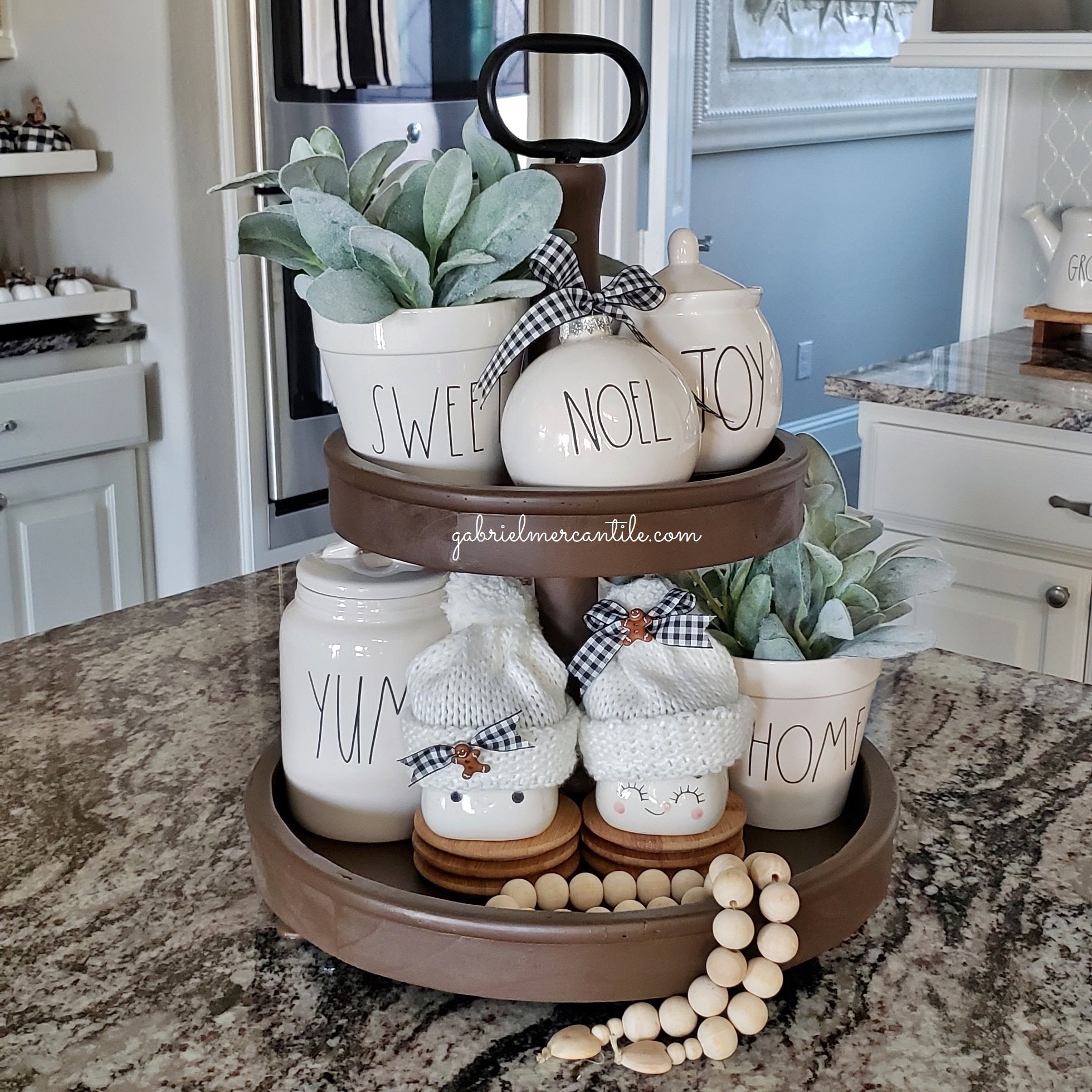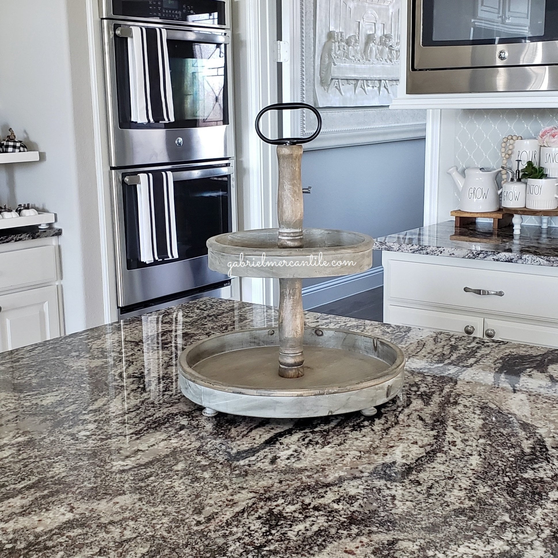 Farmhouse Style Kitchen 2 Tiered Wooden Tray Tiered Tray