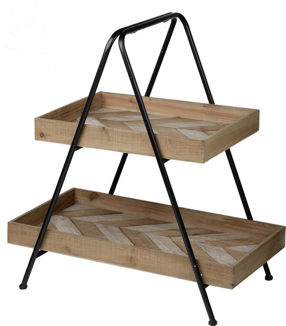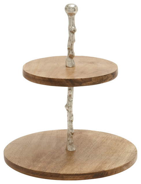 Decmode 2 Tiered Wood And Aluminum Tray Hayneedle