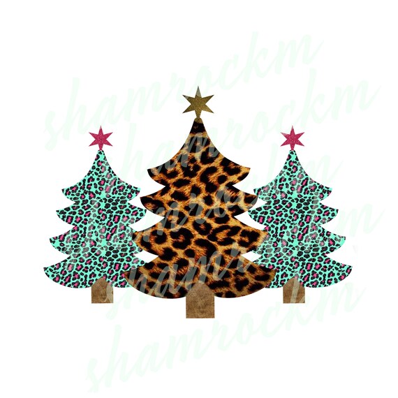 3 Cheetah Christmas Trees Featuring Teal And Pink 2 Png Etsy