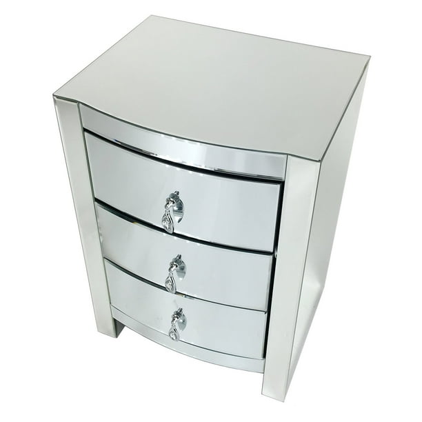 Bedroom Furniture 3 Drawer Side Table End Table Silver Mirrors