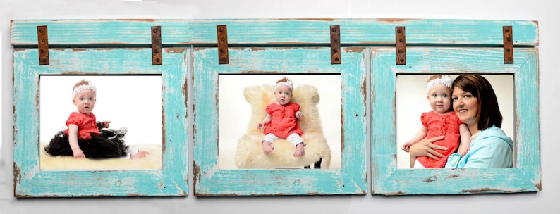 Barnwood Collage Turquoise Frame 3 8x10 Multi Opening Etsy