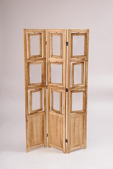 Amazon Com Ehemco 3 Panel Folding Photo Screen Room Divider In Natural Oiled Vintage Finish Kitchen Dining