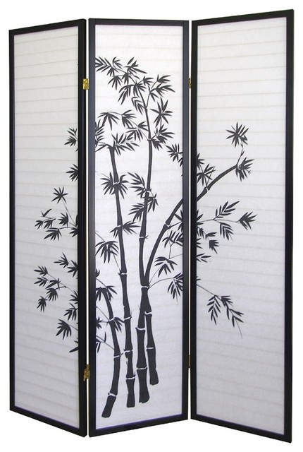 3 Panel Room Divider Privacy Screen With Bamboo Design Black White Asian Screens And Room Dividers By Hilton