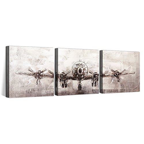 Vintage Airplane Canvas Wall Art Decor 24x24 3 Piece Set Total 24x72 Inch For Sale Online
