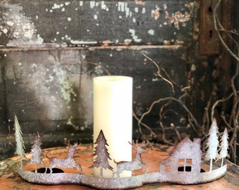 Rustic 3 Pilllar Candle Holder Pillar Candle Centerpiece Antique