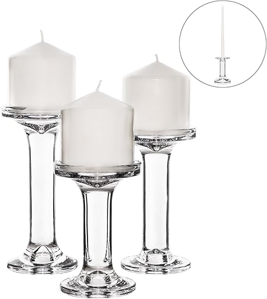 Glass Candle Holder Set Of 3 Pillar Holders Candlesticks Stemmed