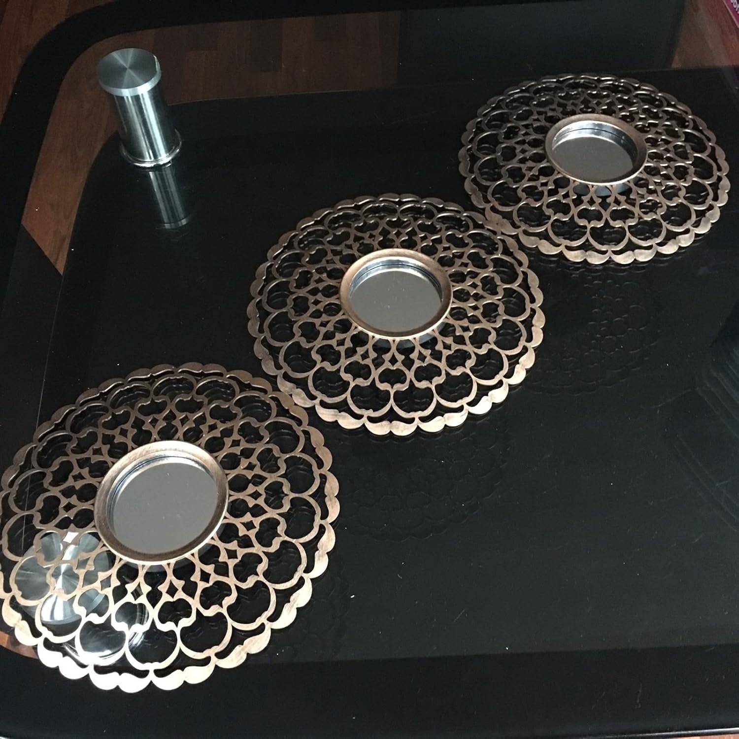 Set Of 3 Copper Moroccan Art Deco Round Wall Mirrors Wall Art