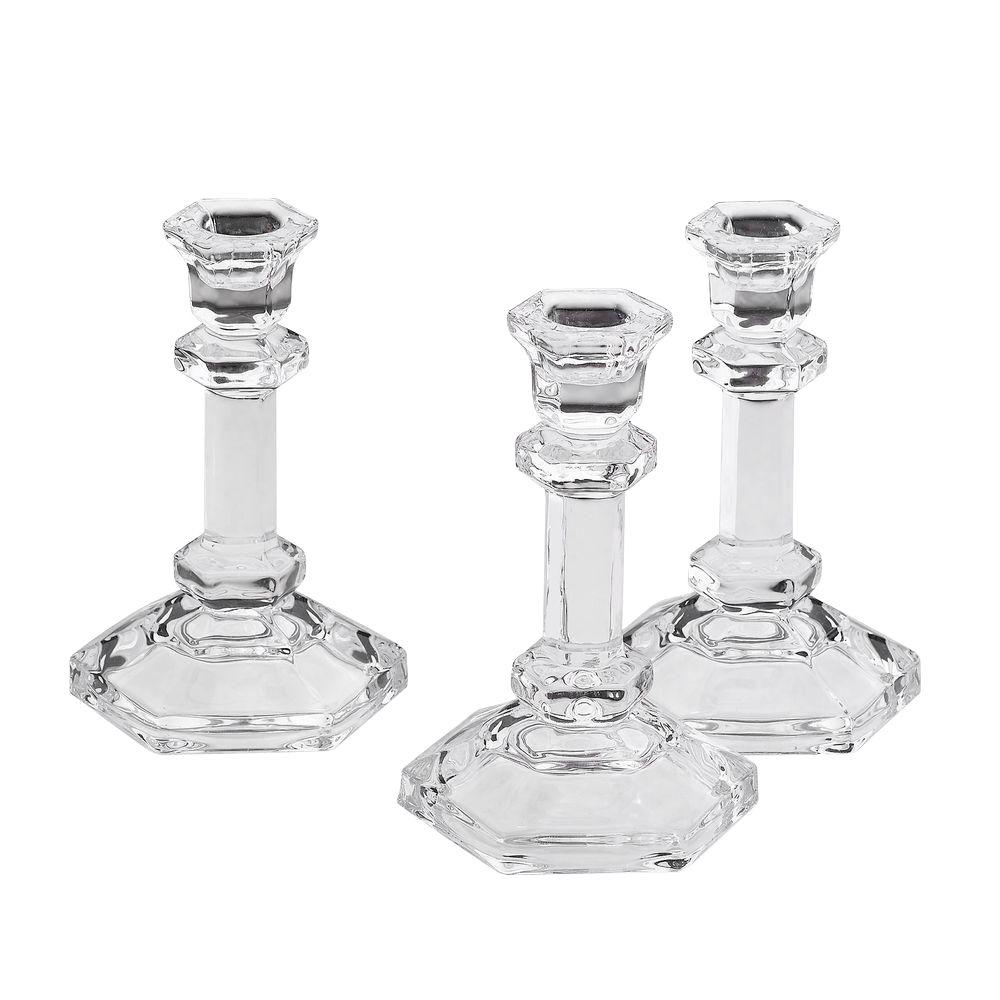 24cm Tall Light In The Dark Set Of 3 Glass Candle Stick Holders Hexagonal Taper Candles Holder For Candlestick Dinner Candles Party And Wedding Centrepieces Table Decoration 24cm Tall Kogan Com