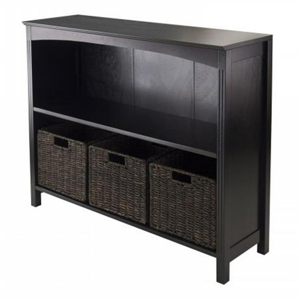 Winsome Wood Leo Wood 3 Tier Shelf With 3 Rattan Baskets 1 Large