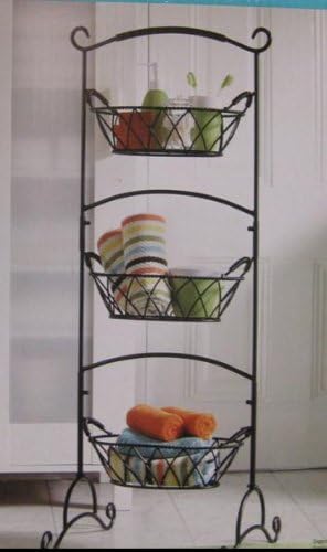 3 Tier Metal Bushel Basket Floor Stand Bathroom Kitchen Vegetables