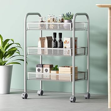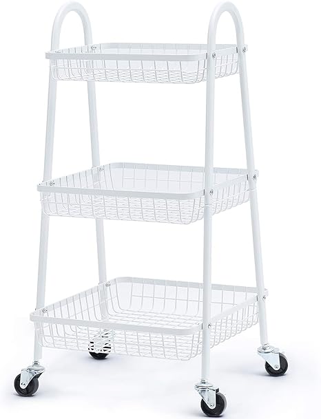 Heimi 3 Tier Rolling Basket Stand Full Metal Rolling Trolley For