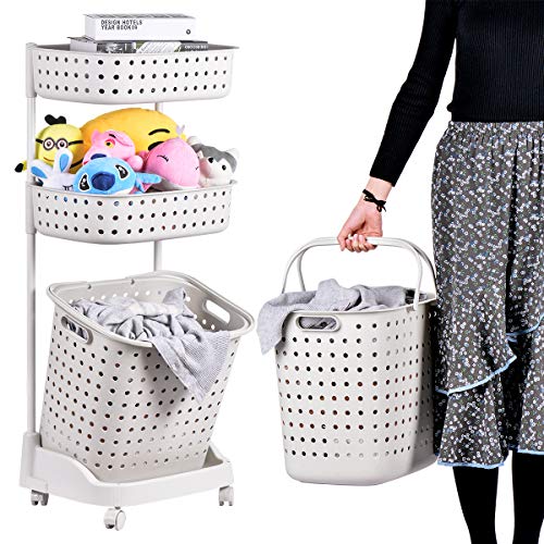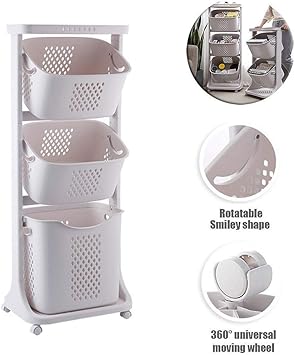 Laundry Basket With Wheel Rolling Laundry Sorter 3 Tier Basket