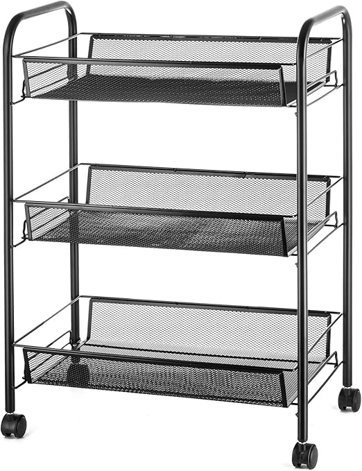 3 Tier Rolling Basket Stand Metal Mesh Office Bathroom Storage
