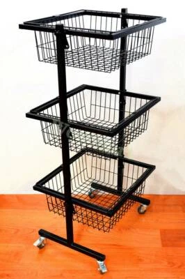 3 Tier Metal Basket Stand Quality Wire Bread Display Rack Fruit