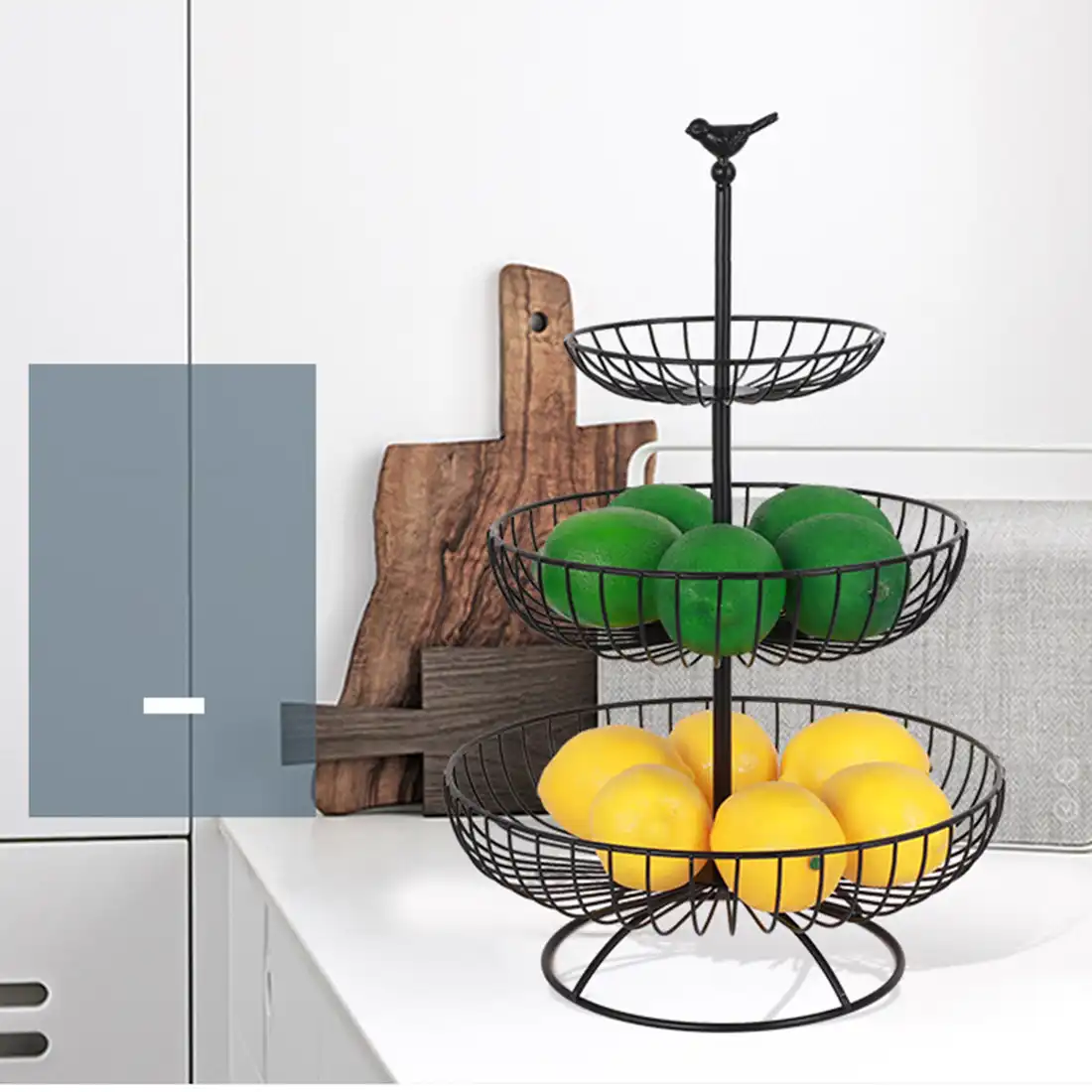 3 Tier Iron Fruit Basket Stand Countertop Wire Food Storage Stand