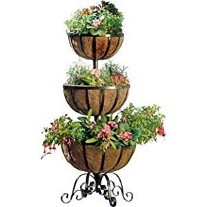 Wrought Iron 3 Tiered Basket Plant Stand Flower Planter