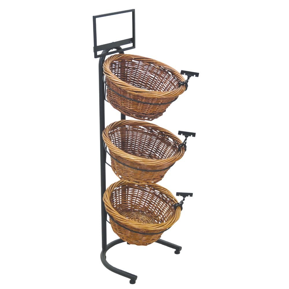 Fixture Displays 3 Tier Basket Stand Sign Clips Wicker Black