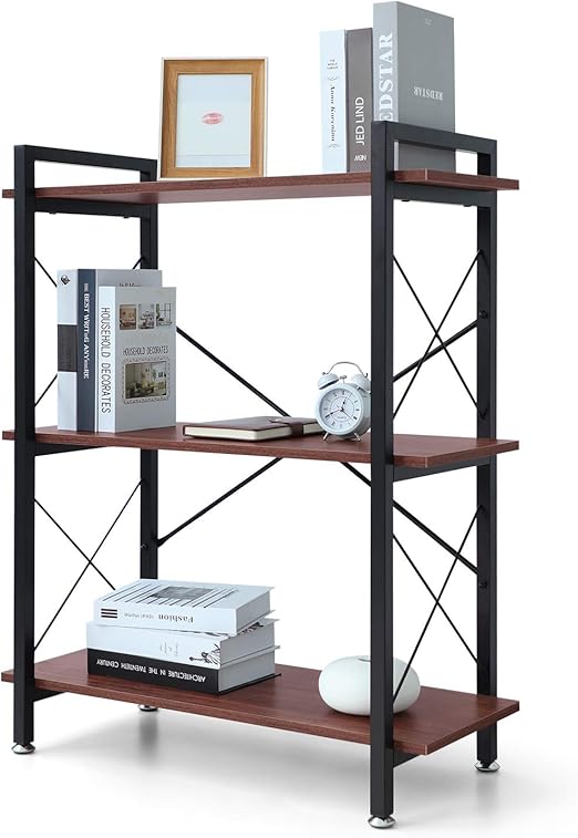 Hombazaar 3 Tier Bookshelf Rustic Industrial Style Bookcase