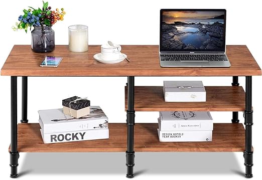 Amazon Com 3 Tier Metal Frame Coffee Table With Storage Shelves
