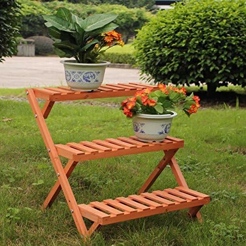 3 Tier Folding Wooden Plant Stand With Pot Shelf Stand Display