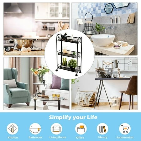 Gymax 3 Tier Rolling Storage Cart Full Metal Basket Stand Utility
